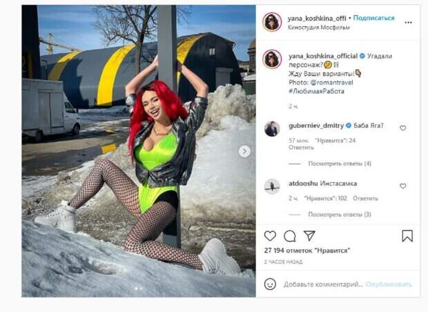 Об этом пишет Politeka.net со ссылкой на профиль красотки в социальной сети Инстаграм. "Угадали персонаж? Жду Ваши варианты!", - написала Яна. Фанаты поставили более 20 тысяч лайков и написали комментарии: "Баба Яга?", "Инстаграмка", "Ядовитый плющ", "Яна после корпоратива", "Немного вульгарно", "Вот так дела, образ огонь", "Харли Квин, не?", "Карди Би", "Ольга Бузова?", "Мальвина?", "Ну, девушка легкого поведения из девяностых, либо современная исполнительница", "Рэперша. А я было обрадовался - решил что Ваш Джокер любимый", "Вариант, Пеппи длинный чулок". Мы писали, что популярная русская актриса Яна Кошкина показала себя в необычном виде. Свой пышный размер Кошкина прикрыла ножкой, а вот округлые ягодицы прикрывать не стала. В комментариях знойной красотке оставили массу приятных слов. Напомним, "невеста" Харламова в чулочках заставила глотать слюнки даже Тарзана А еще Politeka писала, что «невеста» Харламова обезоружила неприличным видом со спущенной шубкой Также Politeka сообщала, что пышногрудая "невеста" Харламова взбудоражила томным взглядом и сочными губами
