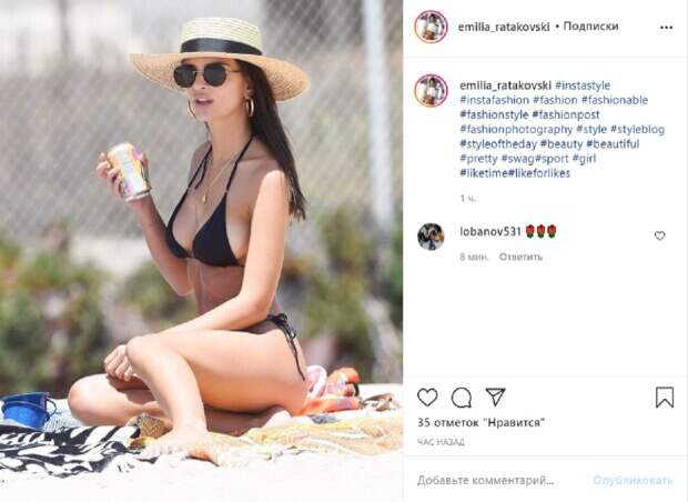 Так, на фан-странице знаменитости в Инстаграм появилось очередная фотография, на которой красотка позирует на пляже в соблазнительном купальнике. Эмили Ратаковски в черном мини- бикини сидела на подстилке и наслаждалась отдыхом на побережье, загорая с баночкой напитка в руке. Голову красотка прикрыла соломенной шляпкой и одела солнцезащитные очки. На снимке она преподносит всю прелесть своего тела – выдающуюся грудь, упругие ягодиці, еще тонкую талию и стройные ножки. До этого Эмили Ратаковски Звезда позировала в белом кружевном платье с длинным разрезом. Она задрала платье и показал не только стройные ножки, но и голые ягодицы. Своим жестом Ратаковски дала понять, что не надела трусиков, чем просто свела с ума своих преданных поклонников. Кроме того, тонкое кружево давало рассмотреть лифчик звезды, которую это совершенно не смущало. Завершили образ модели чокеры на шее и розовый парик. Напомним, растрепанная Ратаковски задрала ножки в кружевных чулках, горячее фото А еще Politeka писала, что Эмили Ратаковски сжала свои аппетитные "малышки" тесным топиком Также Politeka сообщала, что соблазнительная Ратаковски без белья разрешила заглянуть в свое бездонное декольте