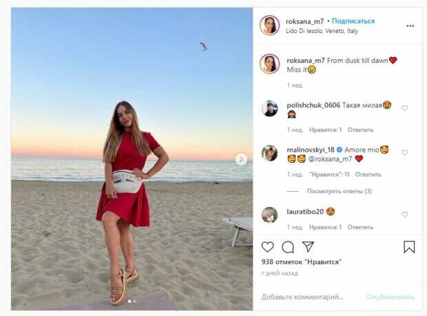 Жена украинского футболиста Руслана Малиновского, звезды итальянской "Аталанты", показала себя и рассказала про закаты и рассветы На фото красотка стоит в босоножках и красном платье, а образ дополнила белой сумочкой от Gucci. Волосы Роксана, так зовут девушку, оставила распущенными, а сама улыбалась на камеру.