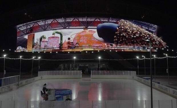 Подрядчика ищет АО «Казань Арена». Подать заявку на участие в тендере можно до 5 мая. Фото: Дмитрий Резнов Напомним, работы по обустройству ледового катка у «Ак Барс Арены» обошлись в 1,7 миллиона рублей. Он открылся перед медиафасадом в конце декабря 2021 года. Каток заливало ООО «ПКП Энергополис» из Марий Эл. С компанией заключили договор как с единственным поставщиком.