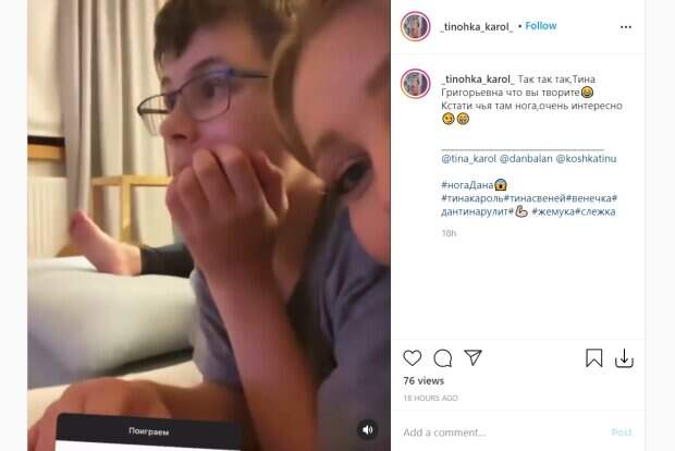 На видео попала также кошка, которая живет в доме, и таинственный человек. Кадры тут же облетели социальную сеть и появились на фан-страницах. Некоторые пользователи предположили, что ноги в ролике принадлежит молдавскому исполнителю Дану Балану, которому приписывают роман с Тиной Кароль, а по мнению других, они принадлежат няне. "Тина Григорьевна, что вы творите