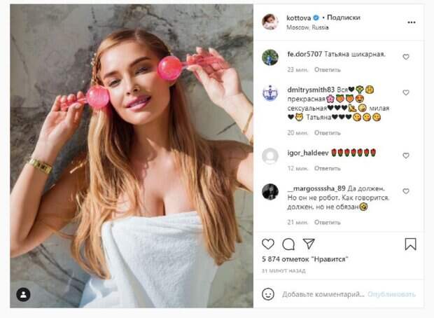 Известная модель и певица Татьяна Котова, бывшая солистка группы ВИА Гра, показала себя и рассказала о бизнесе На фото Котова позировала в белом полотенце, а в руках держала массажные шарики. Звезда оставила волосы распущенными, а белье решила не надевать. Кадр получился очень зажигательным и соблазнительным.