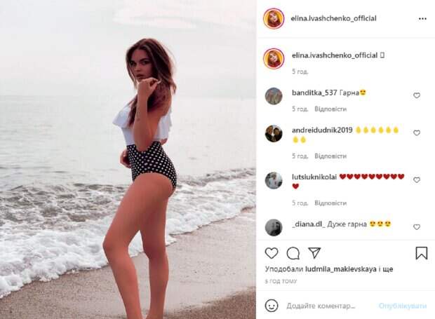 Так, недавно красотка отправилась на отдых, откуда теперь выкладывает жаркие снимки. В этот раз девушка показала очаровательный кадр с пляжа, на котором появилась в соблазнительном образе. Как видно, на новом снимке Элина запечатлена в интересной локации, она стоит на пляже у самой воды, у ее ног разбиваются волны. Перед камерой певица появилась в стильном слитном купальнике интересного фасона, который подчеркнул идеальную фигуру и аппетитные формы. Волосы красотки распущены и небрежно уложены, а на ее лице легкий макияж, она загадочно смотрит в объектив. Свою фотографию Иващенко не подписала, зато поклонники тут же принялись активно обсуждать новый снимок артистки. "Красивая", "Огонь", "Люблю", "Очень красивая", "Очень красивая", "Красавица", "Красивая очень!", "Красотка", "Классный купальник", - пишут очарованные поклонники в комментариях к фото Элины. Напомним, Новая партнерша Олега Винника показала идеальную фигурку в слитном купальнике: "Не могу устоять". Как сообщала Politeka, Юная фаворитка Олега Винника напугала, показав окровавленную ногу на отдыхе: "Приехали...". Также Politeka писала, Юная партнерша Олега Винника Иващенко порадовала эффектным фото в купальнике: "О май гад! ".