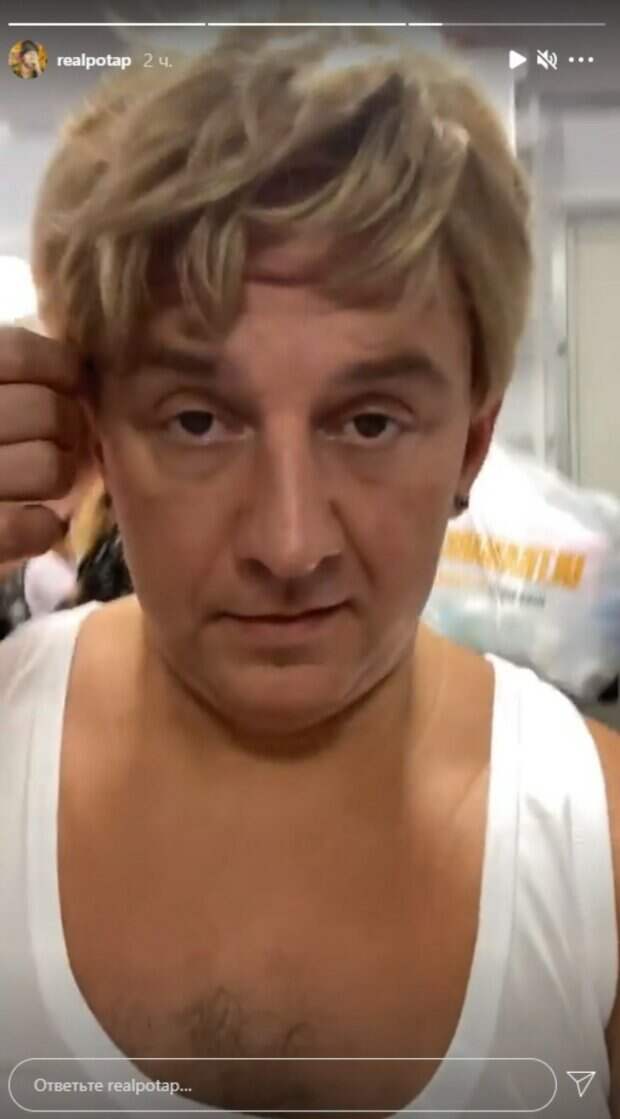 Потап надел беловолосый парик с небрежно уложенными локонами. Как раз их и поправлял в это время стилист, пока певец залюбовался новым собой перед ка камерой. Особо примечательно то, что в последний раз артист с волосами такой длинны ходил лишь когда был подростком. Как можно заметить, в целом, певец имеет очень насыщенный и сложный график, причем его путешествия, связанные с концертной деятельностью, редко совпадают с концертами супруги. Большую часть времени Потап и Настя проводят порознь и снимаются в разных проектах, а также устраивают крупные концерты. Напомним, Каменских в крошечном леопардовом лифе показала, как резвится с Потапом: домашние кадры Также, исхудавший Потап поразил видом, поделившись с украинцами своим желанием: "Какой-то грустный..." Politeka рассказывала, Каменских на диване и без макияжа показала, чем соблазняет Потапа после разлуки: личные кадры
