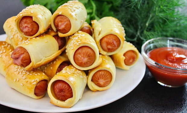 (одно в тесто, одно для смазывания сосисок) Масло подсолнечное 2 ст. л. Молоко 100 мл Сыр 50 г Соль щепотка Сосиски 24 шт. небольшого размера Кунжутные семечки по вкусу Приготовление: Сыр натереть на мелкой терке. В миску, где будете замешивать тесто, влить молоко. Добавить подсолнечное масло и соль. Взбить венчиком. Затем добавить тертый сыр. Перемешать. После этого просеять муку, и замесить тесто. Накрыть миской, оставить на столе на 15-20 минут. Тесто раскатать в тонкий квадратный пласт. Нарезать на полоски толщиной немного меньше, чем сосиска. Каждую полоску разрезать на части примерно по 5-6 см. Затем каждую сосиску завернуть в тесто. Выложить на противень швом вниз. Сверху смазать взбитым яйцом и посыпать кунжутом (по желанию). Сосиски в тесте запекать 20 минут при 200℃. Как приготовить сосиски в тесте: видео-рецепт