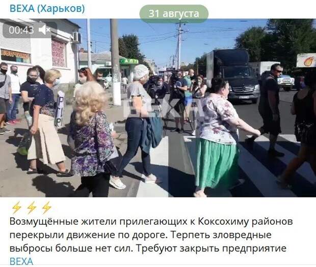 В Харькове возмущённые жители прилегающих к Коксохиму районов перекрыли движение по дороге Жители Харькова - против коксохима, который отравляет окружающую среду. "Терпеть зловредные выбросы больше нет сил. Требуют закрыть предприятие", передает Веха в телеграме. Ранее мы писали, что харьковчане жалуются на вонь в отдельных районах города В харьковских пабликах и каналах в телеграме - десятки жалоб.