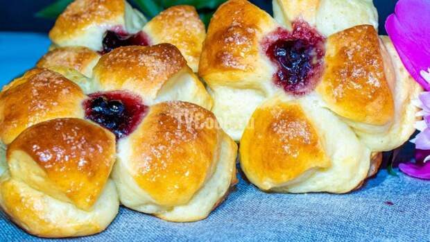 Отличный рецепт приготовления воздушных творожных булочек с вишневым джемом и сахаром, которые приятно удивят своими великолепными вкусовыми качествами и обязательно понравятся многим! Ингредиенты На рецепт приготовления: Молоко 250 мл. Сахар 4,5 ст.л. Куриное яйцо 1 шт. Свежие дрожжи 20 гр. Творог 150 гр.
