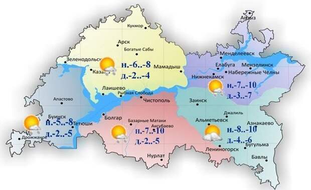В среду, 15 декабря, в Татарстане прогнозируется облачная погода с прояснениями. Днем небольшой снег. Ветер южный, юго-западный умеренный, сообщается на сайте Гидрометцентра РТ. Максимальная температура воздуха днем составит -2.. -7 градусов. В Казани ожидается от -2 до -4 градусов. В Набережных Челнах синоптики прогнозируют от -3 до -7 градусов.
