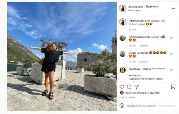 Ирина решила поделится в Инстаграм, как проводит время на заграничном курорте. На новом фото красотка показалась в футболке и шортиках. Красотка позировала на фоне гор, улыбаясь и наслаждаясь погодой. "Жить каждый миг сейчас... ярко", - написала Ирина в публикации. Фанаты поставили более 600 лайков и написали комментарии: "Шикарное", "Круто". Дмитрий тоже опубликовал снимки. Парочка была в большой компании, позируя у моря. На других снимках Монатик был сам и с Ириной. Напомним, Монатик покинул Украину и устроил жене идеальное свидание, о таком мечтает каждая А еще Politeka писала, что жена Монатика выбралась на романтичную прогулку с мужем по Милану, и сделала признание Также Politeka сообщала, что Дзидзьо, Козловского, Ефросинину и других звезд потряс поступок Монатика в детской больнице