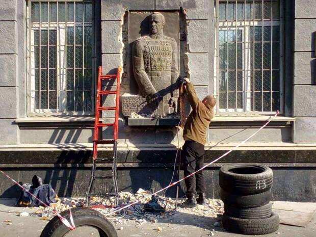 Ахеджакову как либерального трибуна, я знаю, вы не любите. Однако монолог ее героини из бессмертного «Гаража» как нельзя лучше описывает выходки неандертальцев на Украине. «Вы хотели оскорбить меня — вы же себя оскорбили!». 1 декабря, в Одессе, в день рождения Маршала Победы Георгия Жукова, неизвестные поставили на его пустующий постамент… унитаз.