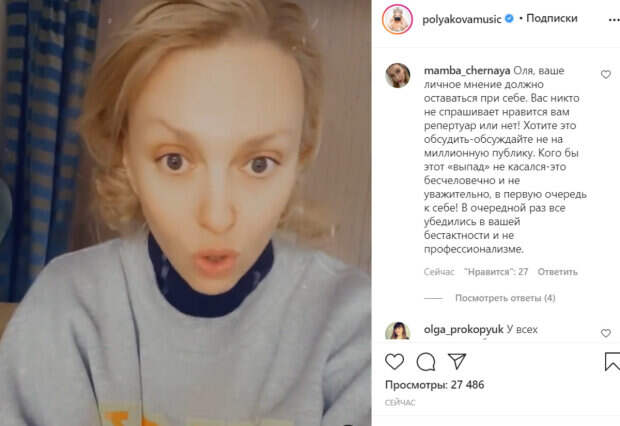 Это вызвало волну критики в адрес певицы. «Маска! Факап!», - подписала видео артистка. «Всем привет, дорогие мои. Вчера вышел очередной выпуск шоу «Маска». Я хочу сказать спасибо за то, что смотрите. Прочитав некоторые комментарии, я поняла, что я должна дать свой комментарий по поводу моего выпада в сторону Тины Кароль, где я называю ее «плакальщицей». Это относится исключительно к творчеству и песням Тины Кароль. Я действительно думаю, что в последнее время у Тины очень грустный репертуар. Но саму артистку Тину Кароль я очень люблю и уважаю, и я никогда бы не стала шутить на тему ее личной трагедии и личной истории. Поэтому все, кого это зацепило или оскорбило, я искренне прошу прощение. А к режиссерам монтажа у меня отдельная просьба. Если вы видите, что что-то идет не так, и может быть трактовано не верно, так вырезайте. Вы же так много хорошего там вырезаете, что остается только то, что жюри неадекватное», - заявила артистка. Стоит отметить, что в сети Полякову затравили за ее слова. Даже извинения не помогли исправить ситуацию. Напомним, что безудержная Полякова в красном экстра-мини затмила Кухар и Ефросинину: "Давай, Оля..". Как сообщала Politeka, эффектная мать Поляковой показала, как выглядела в молодости, редкие кадры: «Так вот, в кого Оля такая…». Также Politeka писала, что Полякова в новом лифчике покрутилась перед зеркалом и похвасталась дарами: "Как хорошо сидит, а?".