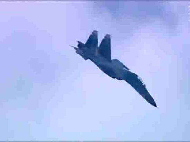 Фото: Кадр из видео Российский истребитель Су-27 поднимали в воздух для перехвата американского самолета-разведчика. Это произошло над Черным морем. Как сообщил Национальный центр управления обороной России, российские средства контроля воздушного пространства заметили над нейтральными водами Черного моря приближающуюся к госгранице РФ воздушную цель.
