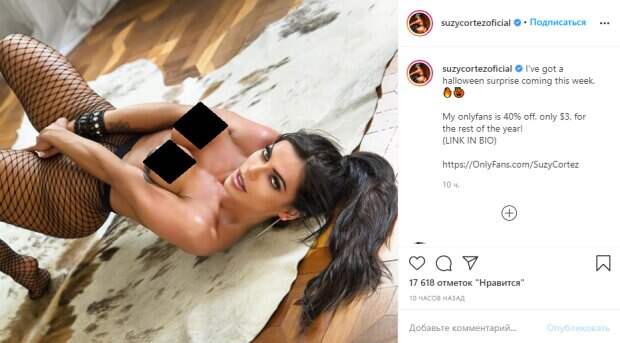Брюнетка соблазнительно выгнулась, приподнявшись на цыпочках. Руками девушка прикрыла "срам", вытянув их между ног, но бюст оставила нетронутым. Видно, как эффектно напряглись ее мышцы. "На этой неделе у меня есть сюрприз на Хэллоуин.