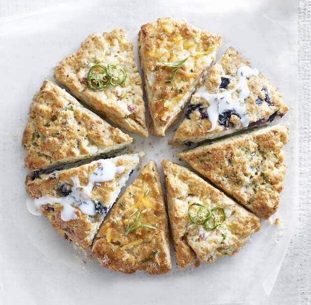 РЕЦЕПТ ПИРОГА-ОСНОВЫ Время приготовления: Подготовка: 15 минут Всего – 55 минут Рассчитано на 8 порций Вам понадобится: 2,5 ст. муки без горки 1/3 ст. сахара 1 ст.л. разрыхлителя 0,5 ч.л. мелкой соли 225 г холодного сливочного масла (нарезать кубиками) 1 ст. жирных сливок 1 крупное яйцо, взболтать Нагрейте духовку до 220 С.