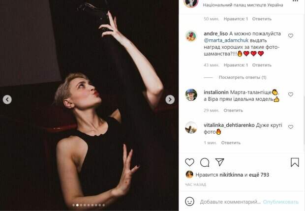 net. "Вот так встреча на кофе заканчивается фотосессией с Мартой Адамчук ❤️", — написала артистка под эффектными снимками. Фото как в полный рост, так и чисто портретные получились очень живими и динамичными. В кадре Вера позирует в черной юбке и майке, демонстрируя стройное тело и отменную пластику. А стильная короткая стрижка в сочетании с красной помадой делают образ невероятно страстным. Подписчики по достоинству оценили и работу модели, и фотографа. "Марта-талантище, а Вера прям идеальная модель; очень крутые фото; Мало того что поете как богиня,так и выглядите как королева,ну правда,очень красивая; Красиво