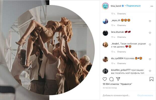 В клипе певица показала себя, как с трогательной, так и с неожиданно бойкой и дерзкой стороны. «Мы тонули, падали, взрывались, летали, ходили по воде, воевали, рубили топором, калечили виновных. Чего только не делали на съемочной площадке. Использовали самый большой 100-метровый кран в Украине, чтобы заставить транспортное средство левитировать», - рассказывал о создании клипа режиссер Стас Морозов. Сама Тина поделилась новым кадром со съемок, на котором ее буквально носила на руках толпа людей. Данная работа не оставляет фанатов равнодушными, ведь масштабный клип-трилогия получился очень насыщенным и ярким. Его снимали целых пять дней. Тина на новом фото предстала в ультра-модном наряде от британского дизайнера David Koma и сразу же получила сотни отзывов: «Чтоб оторваться от земли И не встречать моих растерянных глаз, А я буду ждать тебя вечность, Слушая космоса бас», - написала Кароль. Вот что ответили фанаты: «the best ♥️», «Прекрасная