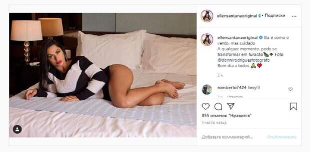 Известная модель Эллен Сантана, которая получила титул за самые красивые ягодицы, показала себя и рассказала о характере На фото Эллен позирует в свитере и без штанов. Трусиков на красотке тоже не было видно, но это совсем Сантану не смущало. Девушка соблазнительно выгнулась и сверкала аппетитными ножками на кровати.