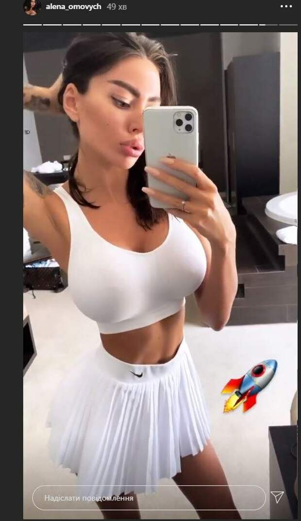 Известная украинская модель Алена Омович, которую называют отечественной Кардашьян, показала себя с утра На фото красотка была в белом топе и юбке. Верхняя часть одежды была настолько тесной, что грудь прямо выпирала из нее. Омович волосы оставила распущенными, а сама стояла перед зеркалом и снимала себя на телефон.