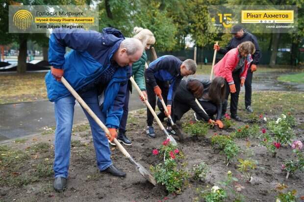 Розы Мирных». Каждая посаженная роза символизирует одну историю, хранящуюся в уникальном Музее «Голоса Мирных» (детальнее о проекте здесь). – Фонд Рината Ахметова проводит в Украине Неделю Мирных каждый сентябрь с 2018 года. Задача проекта ‒ поддерживать мирных жителей Донбасса, делать их и их жизни видимыми, а их истории ‒ рассказанными. В своё время именно Неделя Мирных стала импульсом для создания Фондом Рината Ахметова Музея «Голоса Мирных». Музей собирает самый полный архив свидетельств очевидцев войны на Донбассе. Наша цель ‒ 10 000 историй до конца этого года и 100 000 ‒ до конца 2025 года. В нашем Музее каждая история имеет значение, каждый Мирный Донбасса важен», ‒ отметила член Наблюдательного совета Фонда Наталья Емченко. Она напомнила, что в 2014 году был создан Гуманитарный Штаб «Поможем» Фонда Рината Ахметова, который оказал мирным жителям Донбасса беспрецедентную по своим масштабам помощь и спас 3,5 млн жизней. В рамках Недели Мирных стартовал Всеукраинский конкурс эссе «Один день» для школьников, посвящённый трагедии Мирных на Донбассе. Он проводится при поддержке Института модернизации содержания образования Министерства образования и науки Украины. С уроком-анонсом конкурса в Алексеево-Дружковскую общеобразовательную школу-интернат №13 приехал амбассадор Фонда, известный ведущий телеканала «Украина» Игорь Пупков (детальнее о проекте здесь). Также Фонд Рината Ахметова совместно с «Медиа Группой Украина» и ФК «Шахтер» запустил Всеукраинский онлайн-проект #ОдинДень2014. В рамках проекта тысячам украинцев был задан вопрос ‒ в какой день для каждого из них началась война на Донбассе. Фонд Рината Ахметова призывает украинцев на личных страницах в социальных сетях рассказать свои истории, добавив хештеги #ОдинДень2014, #ГолосаМирных и #ФондРинатаАхметова. Планируется собрать 1000 таких историй и выпустить книгу. Чтобы помнили. Ради лучшего будущего (детальнее о проекте здесь). Кроме того, в Мариуполе будет установлена аудиоскульптура «Домой», посвященная историям Мирных. Звуковая арт-инсталляция, авторства современного украинского художника Виталия Кохана, символизирует надежду на возвращение домой. Неделя Мирных – часть беспецендентного проекта Фонда Рината Ахметова Музей «Голоса Мирных». В нем уже собрано свыше 2000 историй, что делает Музей крупнейшим в Украине собранием свидетельств очевидцев военных событий. Он призван максимально широко освещать основную и наиболее болезненную тему вооруженных конфликтов – судьбы мирных жителей. Если вы житель Донбасса, расскажите свою историю нам, Музею «Голоса Мирных», а мы расскажем ее миру. Для этого перейдите по ссылке и заполните небольшую анкету. Также вы можете обратиться по телефону горячей линии 0800509001 и попросить о психологической помощи. Ее оказывают специалисты, которые прошли обучение по курсу «Травма войны». Если вы работаете с историями Мирных и заинтересованы в сотрудничестве с Фондом Рината Ахметова в рамках Недели Мирных и Музея «Голоса Мирных», напишите или позвоните нам.