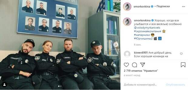 25-летняя актриса Анна Кошмал, сыгравшая Женьку Ковалеву в "Сватах", удивила неожиданным преображением Как сообщает Politeka, ссылаясь на Инстаграм знаменитости, Анна в форме полицейского сидит на диване в окружении трех актеров, на которых тоже одежда полицейских. Актриса предстала перед фанатами в новой роли, показав кадр со съемок сериала "Юрчишины".