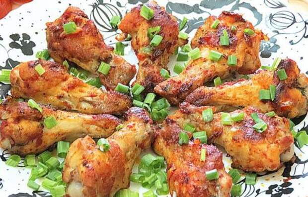 Ингредиенты куриные крылья 500 гр. лук 1- 2 шт. томатная паста 1 ст.л. растительное масло хмели-сунели зеленый лук соль, перец Способ приготовления Шаг 1 Крылья моем , разрубаем пополам, выкладываем на разогретую сковороду с маслом. Жарим с двух сторон. Шаг 2 Лук режем полукольцами, добавляем в сковороду.