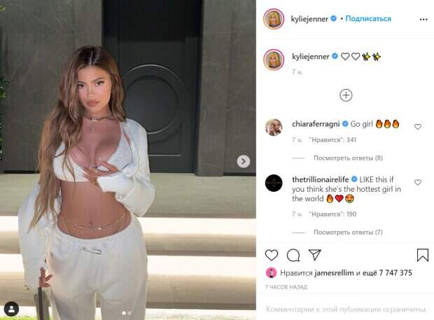 В этот раз младшая сестра Кардашьян превзошла сама себя, представ перед поклонниками в слишком откровенном повседневном наряде, который могут примерять лишь обладательницы идеальных форм. Девушка выбрала для нового съемочного дня соблазнительный комплект: топ, открывающий грудь, а также брюки с высокой посадкой. Белый цвет наряда отлично подчеркнул загар тела популярной в сети красавицы, а фасон – ее выдающиеся формы: пышные бедра и грудь, а также тонкую талию. В дополнение соблазнительно аутфита Кайли подобрала туфли на шпильках, сумку-клатч из крокодиловой кожи, а также золотые украшения. Волосы юная красавица распустила по плечам, а макияж сделала в нюдовых тонах. Звезда сделала селфи, а также показала фото в полный рост. Фолловеры просто не могли отвести взгляд от новых снимков и засыпали красавицу множеством комплиментов. «Это экстравагантно💓», «Ким Кардашьян даже не сравниться с ней», «Это то, что я говорю, ты профессионал в моде, объятия красивой леди», «Красивая девушка 💓👍», «Ты выглядишь просто вау, потрясающая красоточка 🔥», «Настоящее произведение искусства, божественное тело🌷». Напомним, аппетитная Кайли Дженнер в мини-бикини дала полюбоваться своими лакомыми местами. Также Politeka писала, что Кайли Дженнер в нижнем белье выгнулась на кровати, завлекая к себе. Как Politeka сообщала, что шаловливая Кайли Дженнер с мокрыми «близняшками» показала, как выглядит наслажденье.