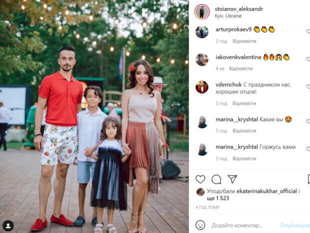 Она выбрала топ телесного цвета, струящуюся легкую юбку и красный цветок, которым украсила волосы. Александр был одет более просто. Он выбрал светлые шорты и яркую футболку. «Всех причастных поздравляю с Днем Отца! Пусть наши дети всегда будут счастливы и чувствуют нашу поддержку!», - подписал фото Стоянов. В комментариях Стоянову оставили массу приятных слов. Многие оценили красоту его стройной жены. «Вы счастливчик, такую жену отхватил», «Красивая семья», «Горжусь вами», «Какие красивые. С праздником», - пишут пользователи сети. Ранее мы писали, что Екатерина Кухар поделилась невероятно атмосферным черно-белым снимком. На фото балерина позировала в образе голливудской красотки. Она надела накидку из перьев и корону. Атмосферное фото сделал для нее фотограф Ростислав Рипка, который является ее другом. Напомним, что Екатерина Кухар выставила свои чувства к мужу напоказ: "Там, за горами хандры и горя...". Как сообщала Politeka, Кухар из «Танців з зірками» с дочкой растрогали необычным подарком для Стоянова: «Безумно мило…». Также Politeka писала, что Кухар из «Танців з зірками» в эффектном наряде засветилась в окружении статных мужчин: фото необычной компании.