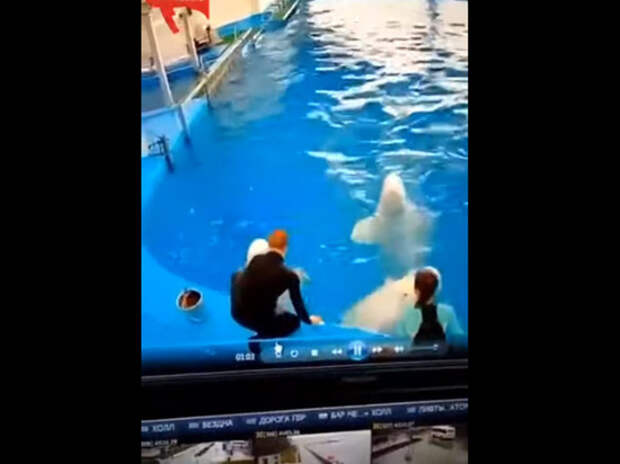 В Приморском океанариуме во Владивостоке — очередной скандал. Коалиция «Свободу касаткам и белухам» распространила видеозапись, на которой тренер Дмитрий Бачинский бьет двух взрослых самцов белух. 12-летнему Нилу он наносит удары кулаком, а 13-летнего Лира бьет ногами. Прокуратура и полиция начали проверки в океанариуме.