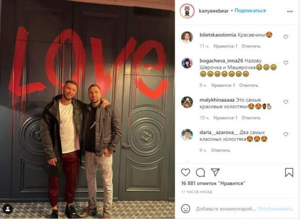 Мужчины появились в кадре в привычных нарядах, расслабленных позах и с легкой улыбкой на лице. Из-за того, что оба они похожего телосложения и с одинаковым цветом волос, некоторые фанаты подметили очевидную схожесть мужчин. Причем сам Михаил обратил внимание на фон, возле которого позировал. На стене красной краской было вырисовано слово «Любовь» английскими буквами. «Макс, а шо по фону?