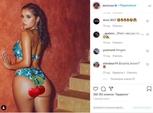 Девушка старется поддерживать себя в форме и выглядеть максимально натурально. На пляже она всегда сраспущенными волосами и с едва заметным нюдовым макияжем. Подчеркивая свои формы, Деми наносит шиммер для тела или же глитер с золотым отливом. В этот раз Роуз показала довольно солнечный кадр, на котором позировала с влажными волосами, блестящей кожей и надетым на нее бело-бирюзовым бикини. В целом поклонникам поднравился образ Роуз, который выглядел максимально природно и ненавязчиво: «Ты очень сладкая», «Ты просто волшебная женщина, можно вечно смотреть», «Это весьма удивительно», «Сколько можно делать так, будто хочешь соблазнить всех», «Вот это интересно», «Так прекрасно», «Совершенно идеально ❤», «Где это?», «Милая девушка ♥ ️», «Нельзя останавливаться» «, «Как я могу ее поцеловать؟», «Когда я вижу тебя, я просто горю ✊