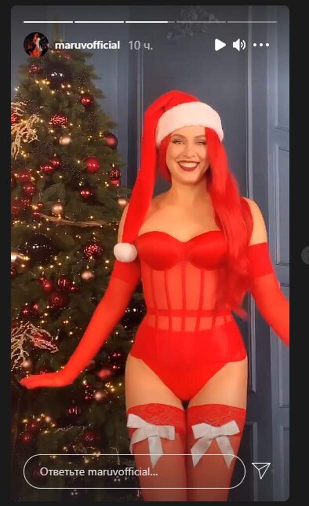 Певица Анна Корсун, известная как MARUV, взбудоражила пикантными предновогодними развлечениями Как передает Politeka.net, 28-летняя звезда опубликовала в своих "сториз" в Инстаграм свежие кадры, на которых предстала вместе с подружками в вызывающих нарядах и отнюдь не за хороводами у елки. Так, бесстыжая MARUV, напевая "елочка, елочка" появилась перед камерой в красных прозрачных чулках с белыми бантиками, соблазнительном корсете, трусиках с высокой талией и шапке Санта Клауса.