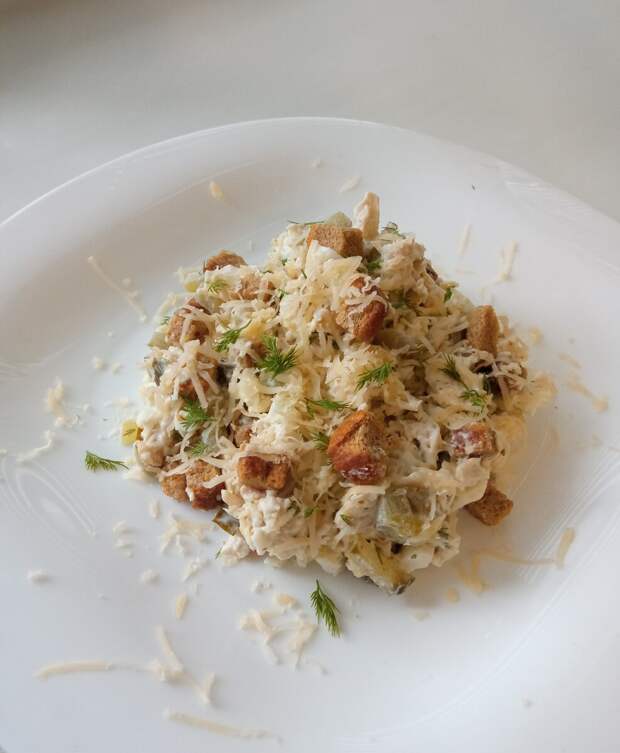Всем большой привет! Подготовка к празднику идет полным ходом, пробую новые рецепты салатов, горячих блюд, закусок. Сегодня хочу вам предложить великолепный салат под названием «Ольга». Мне нравится добавление сухариков в салат, да и сочетание продуктов здесь прекрасное, чем том напоминает салат цезарь… вкусный и простой.