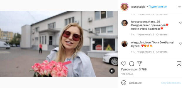 Об этом передает Politeka.net. На этот раз артистка поделилась новым видео на своей странице в Инстаграм. На кадрах она обращается к поклонникам. Артистка в джинсовом платье с букетом алых роз позирует перед камерой. Она дополнила образ солнцезащитными очками. "Ну что, "Подруга" уже звучит в радиоэфире Вы слышали? Делитесь впечатлениями в комментариях. А жителей Чернигова сегодня ждёт дополнительный презент - именно там состоится первое живое исполнение моего нового трека", - обратилась к поклонникам Таюне. Фанаты оставили ей несколько комментариев под видео: "Класс, поздравляю!", "Таичка, с премьерой вас", "Класс", "Невероятная", "Олег Винник расстался с Таюне или нет", "Я кайфую от неё, если честно", "Песня бомбезная! Просто супер". Ранее сообщалось, "Тайная жена" Олега Винника в черном платье приковала взгляды к своим формам: "Котеночек" Также, "Тайная супруга" Олега Винника заворожила формами, танцуя в маечке: "У осени глаза твои..." Politeka рассказывала, "Тайная жена" Олега Винника поразила сходством с Мэрилин Монро: "Красавица моя"