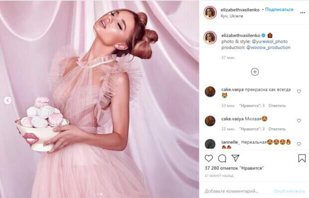 Безусловно, внимание армии поклонников привлекло нежное декольте. В руках девушка держала большой салатник с зефиром в тон наряду. На одном из кадров, она опустила руки вниз, видимо, еле удерживая такую сладкую тяжесть. На другом снимке девушка томно задрала голову, закрыв глаза от наслаждения. Пользователи кинулись комментировать увиденное, расщедрившись на комплименты: "Нереальная