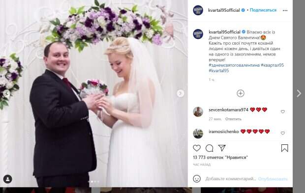 Актеры студии "Квартал 95" удивили кадрами со свадеб Как передает Politeka.net, фото с семейных альбомов артистов появились на официальной Instagram-страничке "Квартала". "Поздравляем всех с Днем Святого Валентина! Говорите о своих чувствах любимому человеку каждый день, и смотрите друг на друга с восторгом, словно впервые!