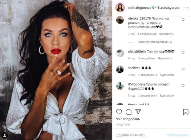 Она распустила свои роскошные черные волосы и дерзко смотрела в кадр. Образ красотка дополнила красной помадой. Стоит отметить, что на руках Логуновой было видно множество татуировок, но особое внимание привлекли пышные «близняшки» модели, которые практически выпрыгивали из кофты. За несколько часов пост красотки собрал тысячу лайков. В комментариях ей оставили массу приятных слов. «Полиночка родная, ну ты просто сногшибательная!», «Топ тут ты», «Просто огонь!!! Фурия», «Убей меня голыми руками», «Вау», «Огонь», - пишут пользователи сети. Ранее мы писали, что Полина Логунова сверкнула своим главным достоинством во всей красе. Женщина позировала в бассейне, демонстрируя роскошную фигуру в купальнике. Она выпятила вперед свою грудь в бежевом купальнике. «Летнее время», — коротко подписала фото красотка. Логунова достаточно часто красуется перед поклонниками в ярких соблазнительных образах. Напомним, что Полина Логунова выставила напоказ аппетитных «близняшек» в микроскопическом купальнике: «Всегда зачетные…». Как сообщала Politeka, Полина Логунова сверкнула невероятными изгибами в купальнике: «Куколка!». Также Politeka писала, что Полина Логунова в одном лифчике показала, как ухаживает за собой: домашнее видео.