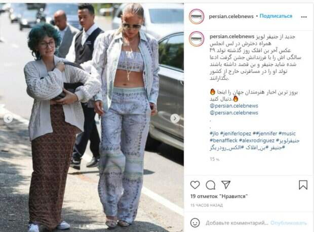 При этом артистка выбирает для выхода в свет весьма модные образы, ничуть не скрывающие ее фигура. В этот раз Лопес заметили в трендовом образе на прогулке с дочерью. Она шла по улице, одетая в летний костюм, который состоял из кроп-топа, широких брюк и удлиненного пиджака от Pucci. Привычные украшения из золота удачно дополнили ее стиль, а очки скрыли от лишних солнечных лучшей. Стильный образ артистка завершила босоножками на шпильках и бежевой сумкой через плечо. А благодаря крошечному топу акцент был подобран, как всегда, на плоскому животу и удачному загару. Также в саду своего дома Дженнифер позировала в наряде от ливанского модельера Elie Saab из коллекции этого года. «Ой, новая безупречность️❤️; Красивый наряд для роскошной женщины, у вас вторая молодость; Всегда идеально, нереальный труд