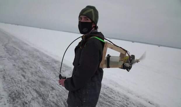 24-летний житель Оттавы Брайдон Гибсон создал «реактивный ранец», с помощью которого он теперь катается на коньках со скоростью до 40 км/ч. На это его вдохновил опыт предшественников – создателей дистанционно управляемых самолетов и лодок.