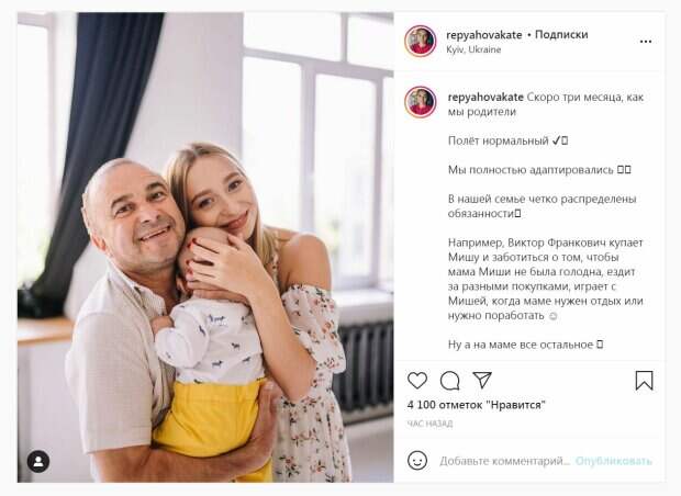 Жена украинского певца Виктора Павлика, блогерша Екатерина Репяхова, устроила с мужем интересную поездку, рассказав о своем родительстве Екатерина Репяхова и Виктор Павлик стали родителями в июне этого года, передает Politeka.net. Для девушки сын Миша первый ребенок, а для артиста - четвертый. Сейчас певец с молодой женой занимается воспитанием малыша, а также оба находят время и на развлечения.