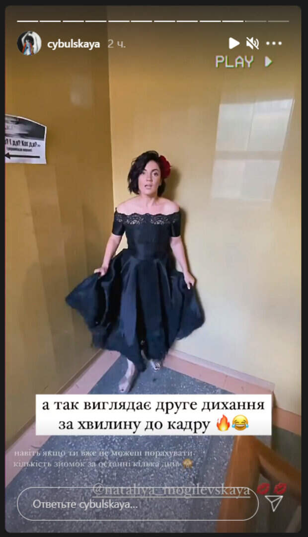 Артистка была одета в черное платье. Ее голову украшал крупный красный цветок. Звезда зажигала, прыгала и выглядела очень вдохновленной. В конце видео она передала привет Могилевской. Впрочем, как оказалось, Цибульская специально подбадривала себя перед съемками, поскольку очень устала. «А так выглядит второе дыхание за минуту до кадра. Даже, если ты уже не можешь посчитать количество съемок за последние несколько дней», - подписала видео звезда. Отметим, что Цибульская все чаще появляется на экранах телевизоров, участвуя в концертах и шоу. Звезда активно строит карьеру, не забывая и про семью. Напомним, что Ольга Цибульская наклонилась к публике, ошеломив разрезом от бедра: "Хорошие формы…". А еще Politeka писала, что Цибульская показала мужа, которого скрывает от публики: "Обещаю...". Также Politeka сообщала, что Цибульская повеселила поклонников вместе с Горбуновым: "Свадьба года".