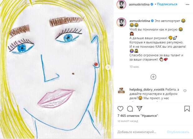 32-летняя российская актриса Кристина Асмус пристыдила сама себя, выставив в соцсети "плоды" неожиданного таланта Как передает Politeka.net, звезда опубликовала в своем микроблоге в Инстаграм свежие фото, на которых продемонстрировала собственные портреты. На первом кадре Кристина сама себя нарисовала: этот портрет явно отличается от остальных, при чем не в лучшую сторону.