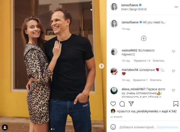 Начинающая певица и модель Соня Евдокименко, тезка своей знаменитой бабушки Софии Ротару, продолжает путешествовать по Америке вместе со своим женихом Как известно Соня недавно отметила свое 20-летие. Несмотря на юный возраст, девушка, по-видимому, скоро может стать невестой и женой. Год назад внучка Ротару впервые познакомила публику со своим бойфрендом - 31-летним миллионером из Украины Денисом Жадановым, засветив колечко на том самом пальце.