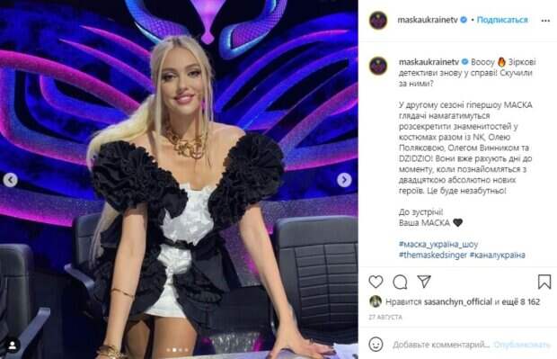 Продолжаются съемки второго сезона шоу "Маска", который, уверяют продюсеры, будет удивлять еще больше Артисты Оля Полякова и DZIDZIO (Михаил Хома), по-прежнему, являются звездными детективами, которым вместе с коллегами предстоит угадать 20 персонажей, спрятанных под масками и роскошными костюмами. На страничке программы "Зірковий шлях" в Инстаграм регулярно делятся с подписчиками фрагментами съемок.