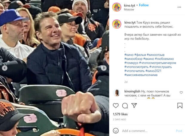 На кадрах Том Круз появился на одной из игр по баскетболу. "Том Круз вновь решил пошалить и вколоть себе ботокс. Вчера актер был замечен на одной из игр по бейсболу", - сообщили на аккаунте. Поклонники оставили множество комментариев, где заметили его изменения и заподозрили в том, что он сделал себе инъекции красоты: "Ну, поел пончиков человек, с кем не бывает! А вы сразу ботокс", "Ну что сразу ботокс, может он просто бухал неделю..?", "Может его пчелы покусали?", "После каникул у бабушки, не иначе