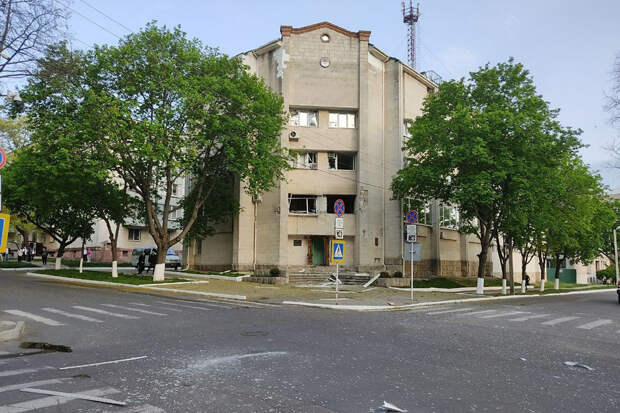 Здание министерства госбезопасности Приднестровья подверглось обстрелу из гранатомета. Внутри здания произошло несколько взрывов. Выбиты окна на верхних этажах. Из помещений валит дым. Пострадавших в результате обстрела нет