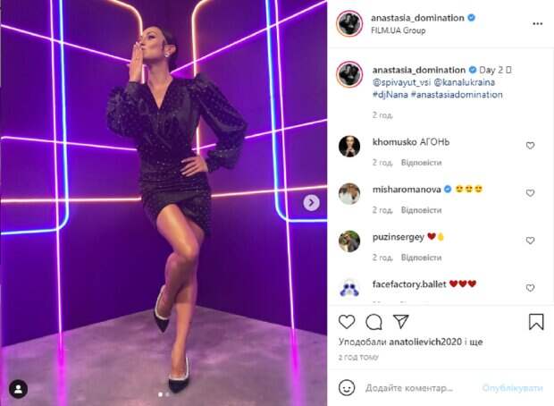 На новых снимках, которые Настя выложила в сеть, она запечатлена в интересной неоновой локации. Перед камерой красотка появилась в стильном темном мини-платье необычного фасона, которое подчеркнуло идеальную фигуру и длинные ноги в элегантных туфельках на шпильке. В подписи к публикации Кумейко написала: "Day 2". Похоже она намекает на второй день съемок шоу "Співають всі", участницей которого стала. Фанаты в восторге от новых фотографий звезды, ее засыпают комплиментами в комментариях: "Огонь", "Красотка", "Люблю", "Обожаю". Напомним, Экс-Nikita Кумейко сняла штаны в раздевалке, показав результаты своего труда: кадры. Как сообщала Politeka, Экс-Nikita Кумейко совсем без одежды понежилась в ванной, кадры наслаждения: "Миссия Клеопатра". Также Politeka писала, Экс-Nikita Кумейко приспустила платье с плеч, устроив настоящую "жаришку": "Знойная женщина".