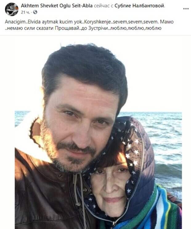 нет сил сказать прощай, до встречи... люблю, люблю, люблю", - режиссер опубликовал фото, на котором позировал вместе с родительницей на берегу моря. Одним из первых свои соболезнования Ахтему выразил председатель Меджлиса крымскотатарского народа Рефат Чубаров. По его словам, пережив депортацию из Крыма в 1944 году и вернувшись на родину только в 1990-м, Суби успела многое сделать для своей культуры. Она была писательницей и педагогом, также пробовала свои силы в актерстве и на сцене. Целые поколения детей выросли на ее сказках: в 1992 году Суби стала автором и ведущей первой телевизионной детской крымскотатарской программы. Примечательно, что она все делала сама, и шила костюмы, и придумывала истории, и "руководила" куклами, а также занималась озвучкой и подготовкой детей к эфиру. Украинцы присоединились к соболезнованиям в комментариях: "Искренние соболезнования, дорогой друг
