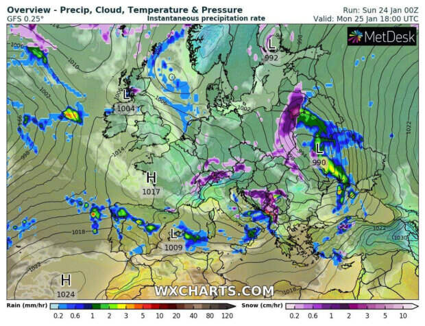 В Украину 25 января придет ветренная погода с осадками Как рассказала на своей странице в Фейсбук синоптик Наталья Диденко, на нашу страну надвигается циклон Lars, который принесет с собой сильные осадки. Из-за плюсовых температур в большей части страны пройдет дождь, однако в западных областях, а вечером в Винницкой и Житомирской ожидается мокрый снег.