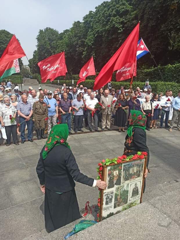 Актив разгромленной украинской Компартии провел сегодня возложение цветов к Вечному огню в центре Киева по случаю 80-летия начала Великой Отечественной войны. Мероприятие прошло крайне скромно – всего на него пришло несколько десятков человек, среди которых многие – глубокие старики. Они принесли с собой красные знамёна «Полк Победы», а также гвоздики, которые и возложили к Вечному огню.