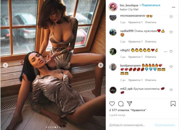 Стройные, высокие и даже худощавые девушки выглядят очень привлекательно. В этот раз они примерили одинаковые пижамы из мягкой бархатной ткани. Алена примерила тонкий лиф и шортики, а ее подруга верхнюю часть пижамы – рубашку и такие же шортики. Находясь рядом друг с другом, девушки подобрали идеальную позу, чтобы показать не только одежду, но и свои достоинства с пикантного ракурса. Вот что пишут в сети: «Как сильно поплыл пол на первом фото